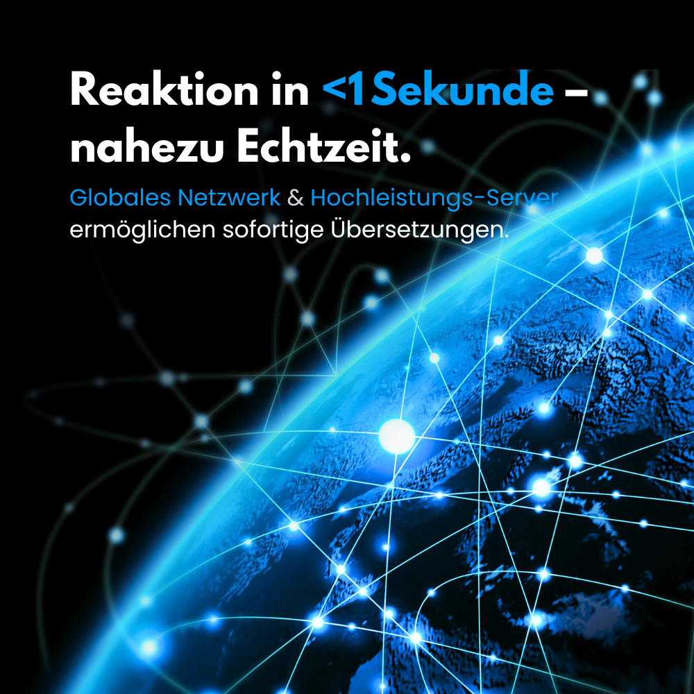 Die Übersetzung erfolgt in der Regel innerhalb von 0,5 bis 1 Sekunde – nahezu in Echtzeit.